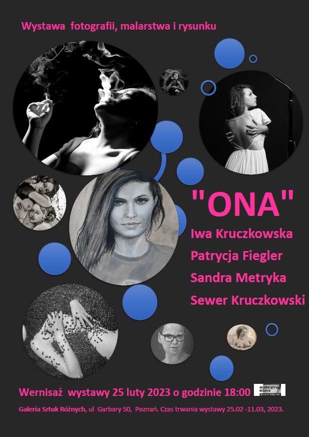 Absolwentka ASP w Krakowie Iwa Kruczkowska-Król zaproponowała wystawę pt. „ONA” , w której będzie uczestniczyło 4 twórców, prezentując zarówno fotografię, jak i zarówno malarstwo i rysunek. Wspólnym mianownikiem tej ekspozycji są portrety kobiet. Zapraszamy!