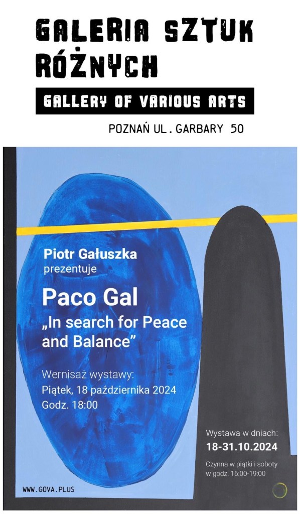 Piotr Gałuszka vel PACO GAL będący koneserem sztuki w ostatnich latach zaczął tworzyć, owocem tej twórczości jest prezentowana wystawa malarstwa.