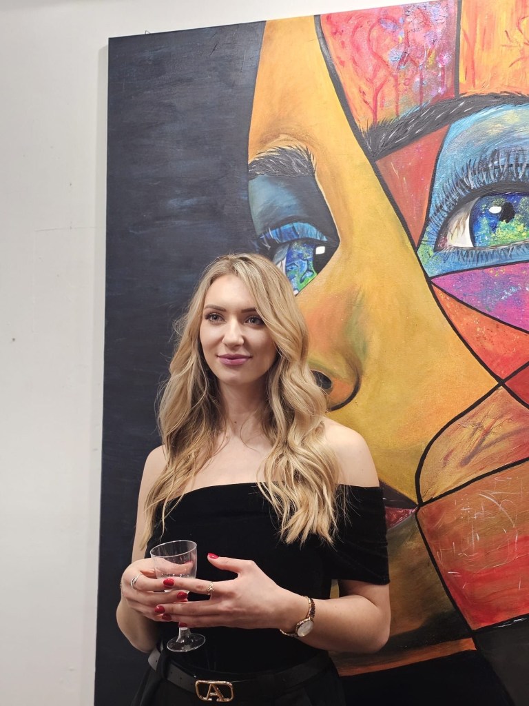 Odbiorcy z zachwytem podziwiali technikę i unikalność dzieł, które urzekają nie tylko kolorystyką, ale też głębią emocji. Magdalena stworzyła prace pełne światła i kobiecej siły, łącząc akrylową farbę, złocenia, brokat i strukturę, co nadaje każdemu obrazowi niepowtarzalny charakter.